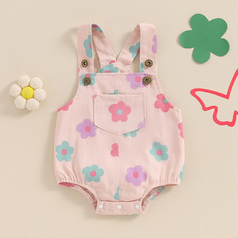 This denim flower romper for baby girls is the perfect combination of style and comfort! Made with soft denim fabric, your little one will feel cozy while looking cute. The playful flower design adds a touch of whimsy to this adorable romper.