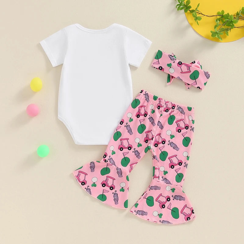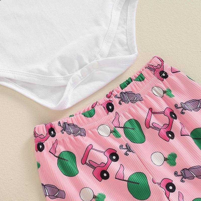 Hit the links in style with Flare Fore the Course! This adorable little girl's golf outfit is perfect for a day on the course with daddy.