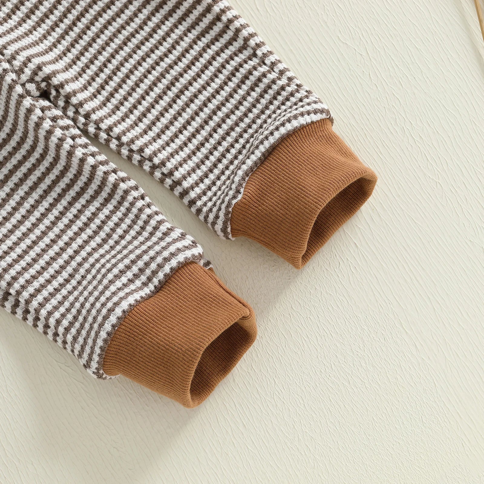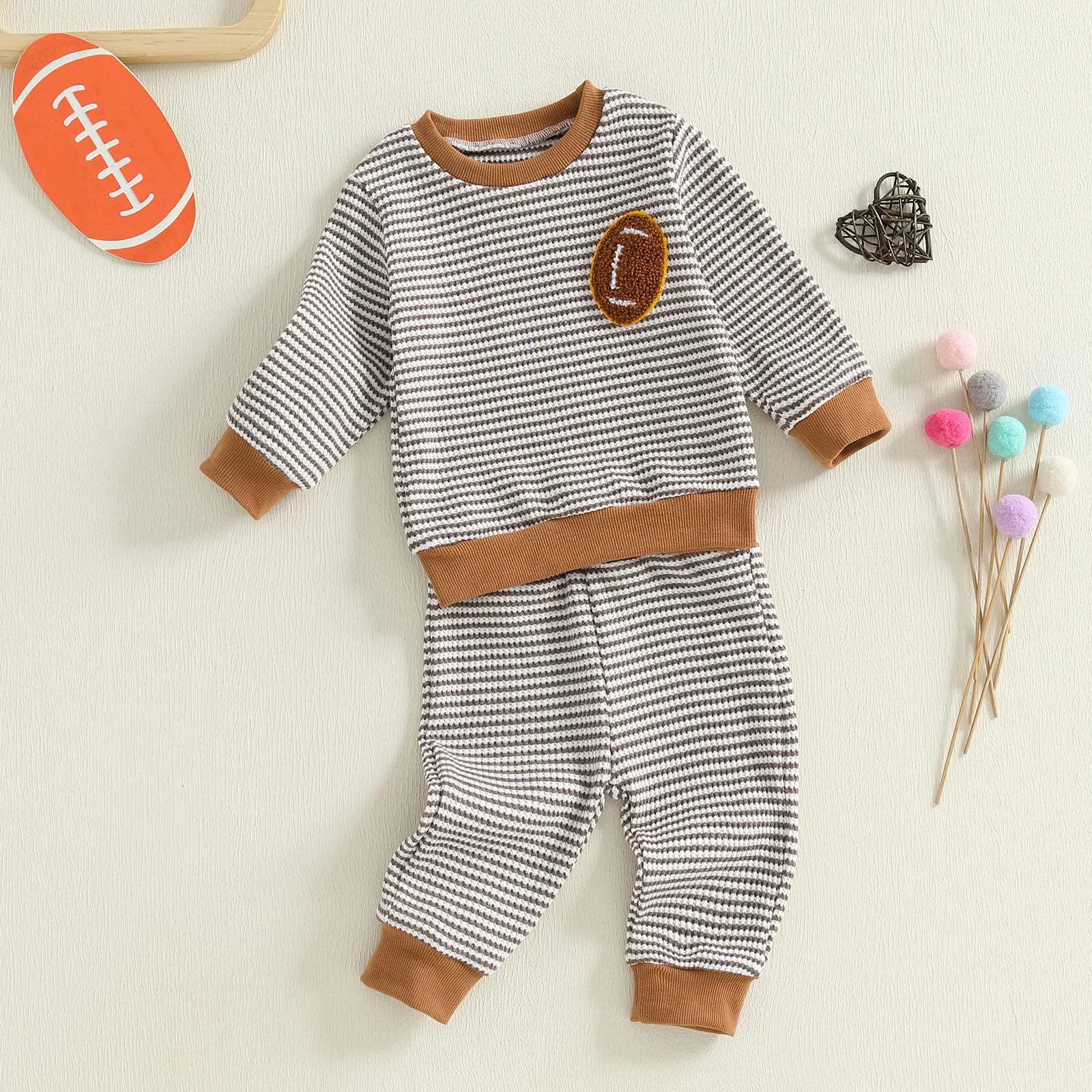 Baby Boy Football Stripe Outfit Set – Long Sleeve Embroidery Top & Striped Pants – Infant Toddler Fall Casual Clothes