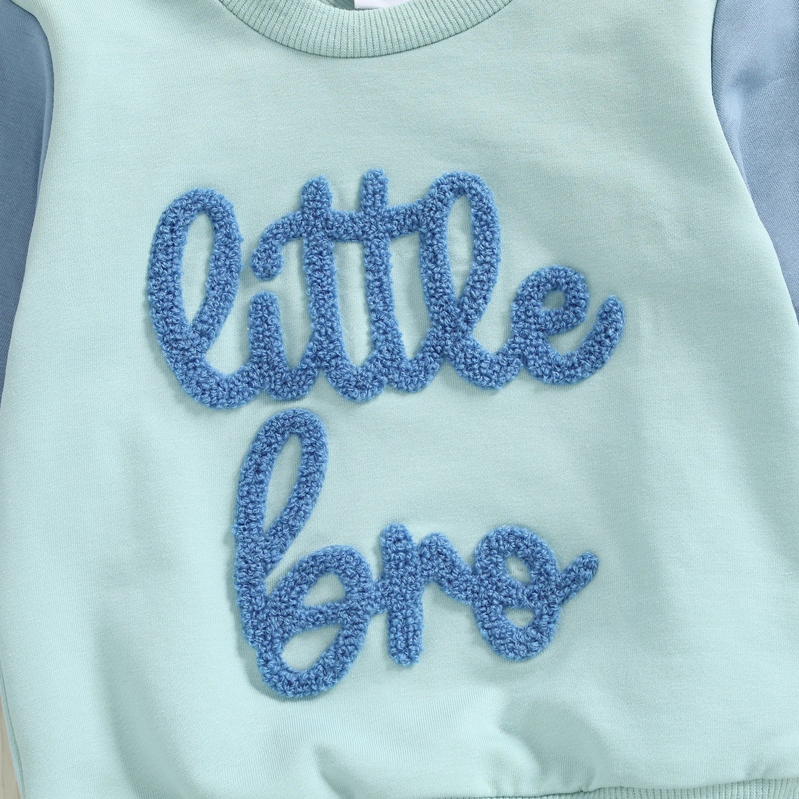 Baby Boy Little Bro Outfit – Fall/Spring – Letter Embroidery Pullover & Solid Pants Set
