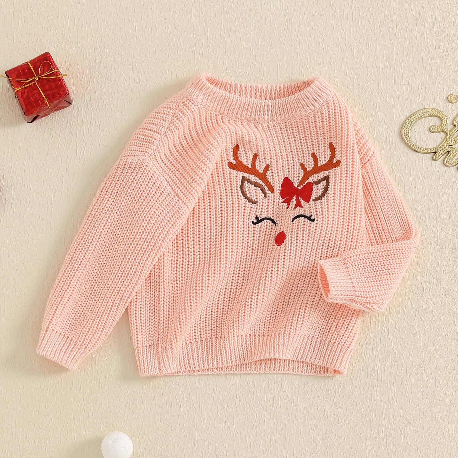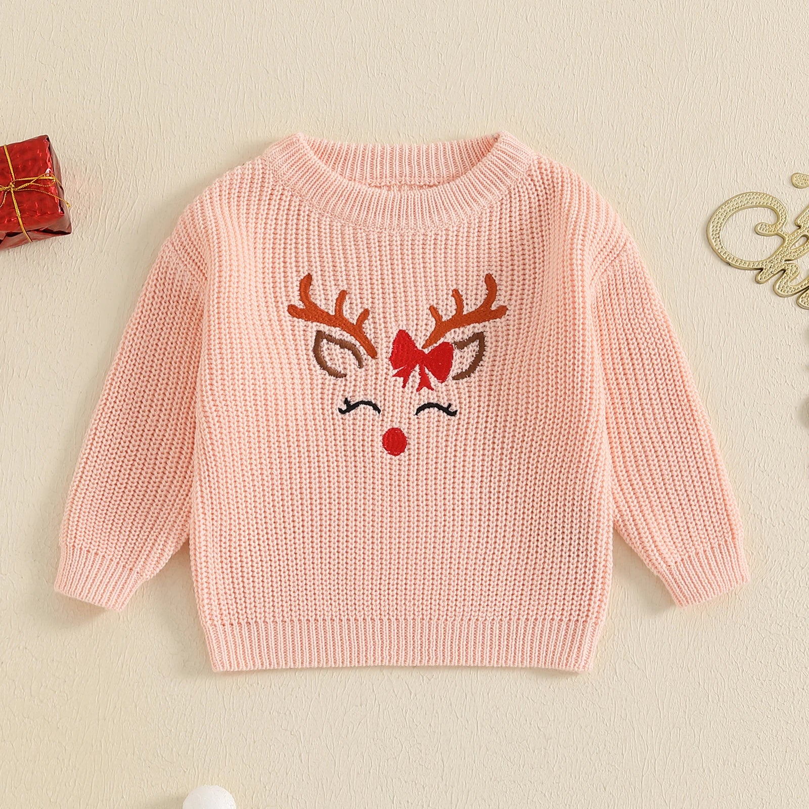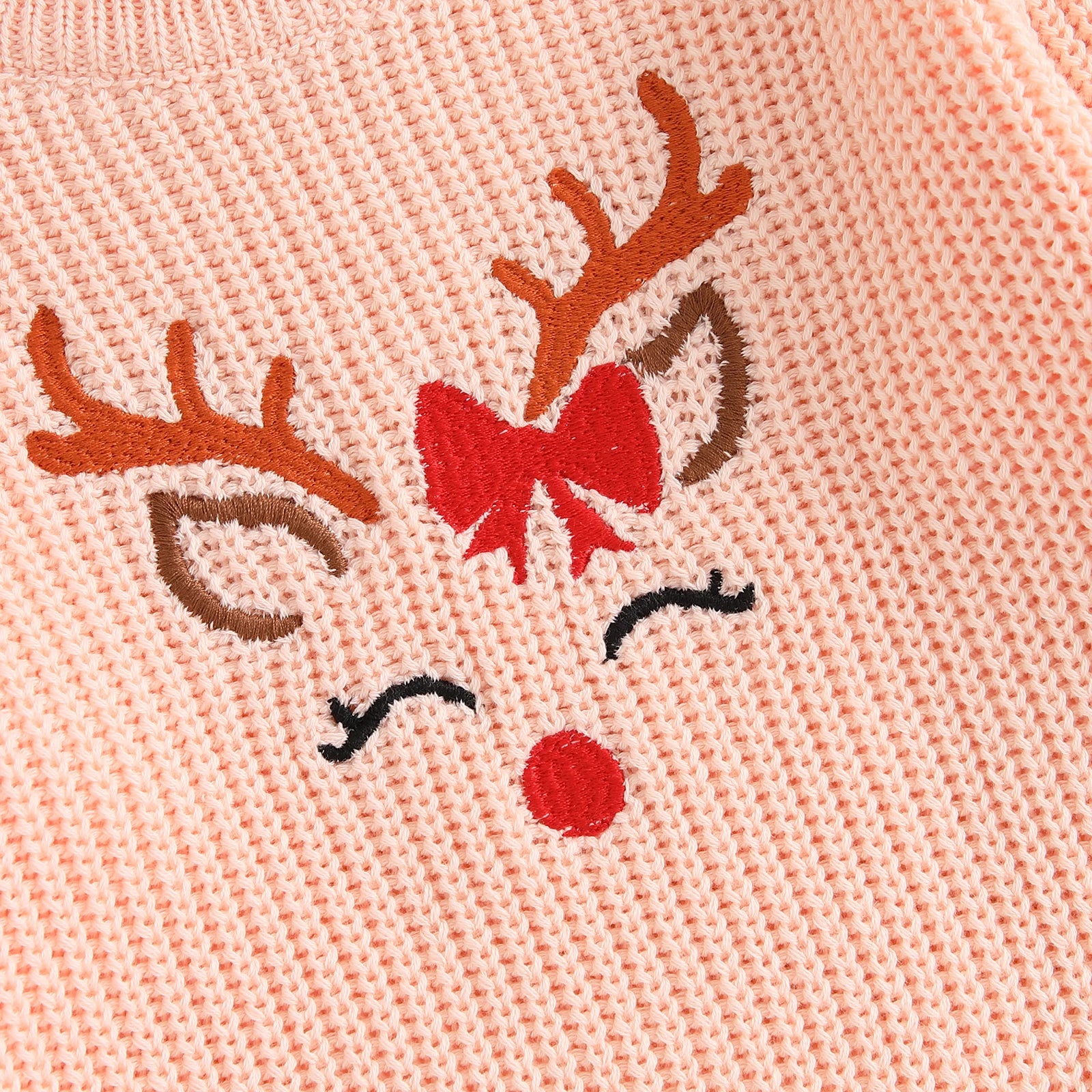 Get your little one ready for the holiday season with our Girl Reindeer sweater! Made for Christmas babies, this adorable sweater features a playful reindeer design. Keep your little girl warm and stylish this season.