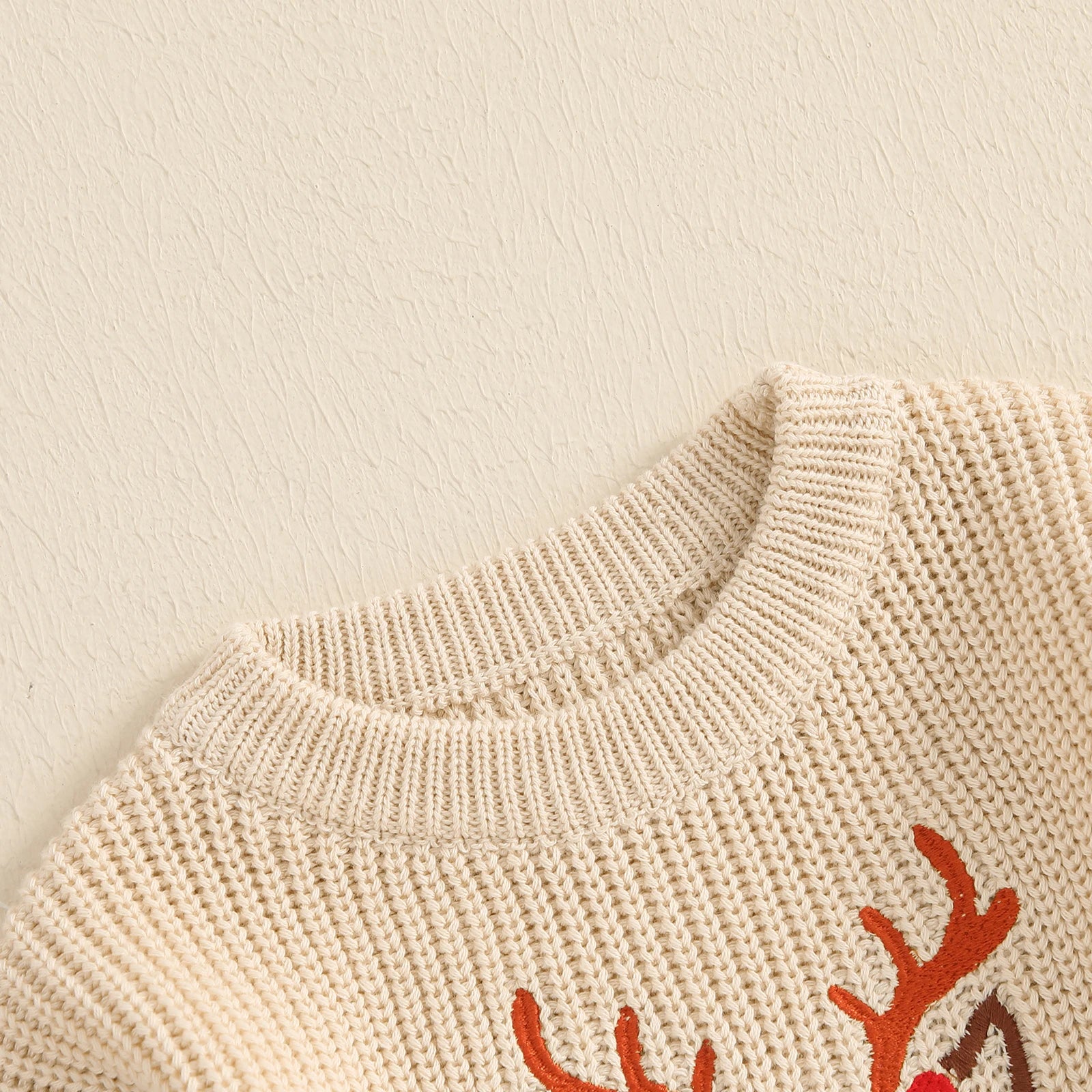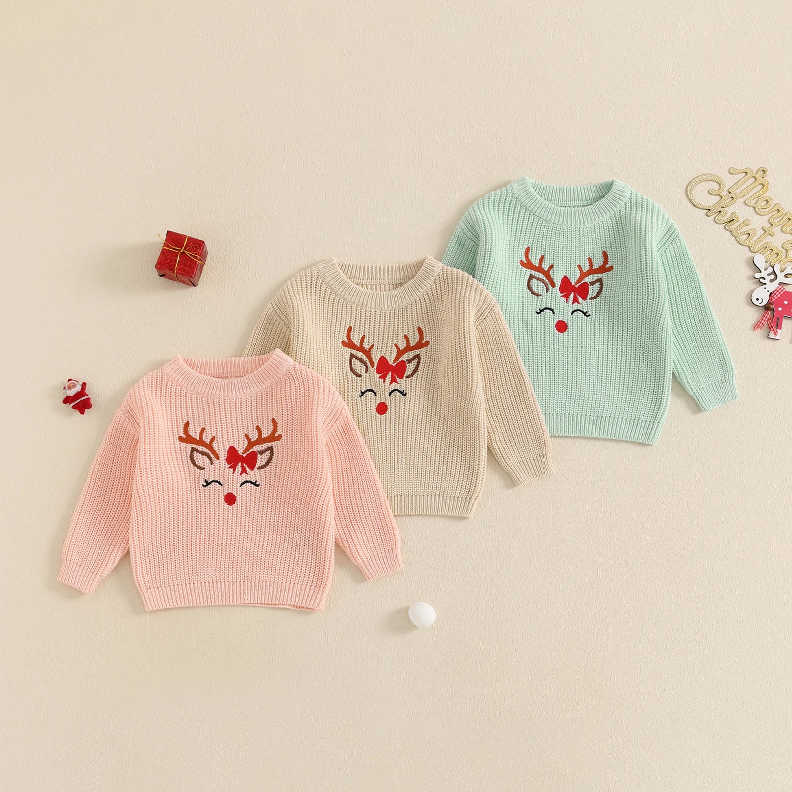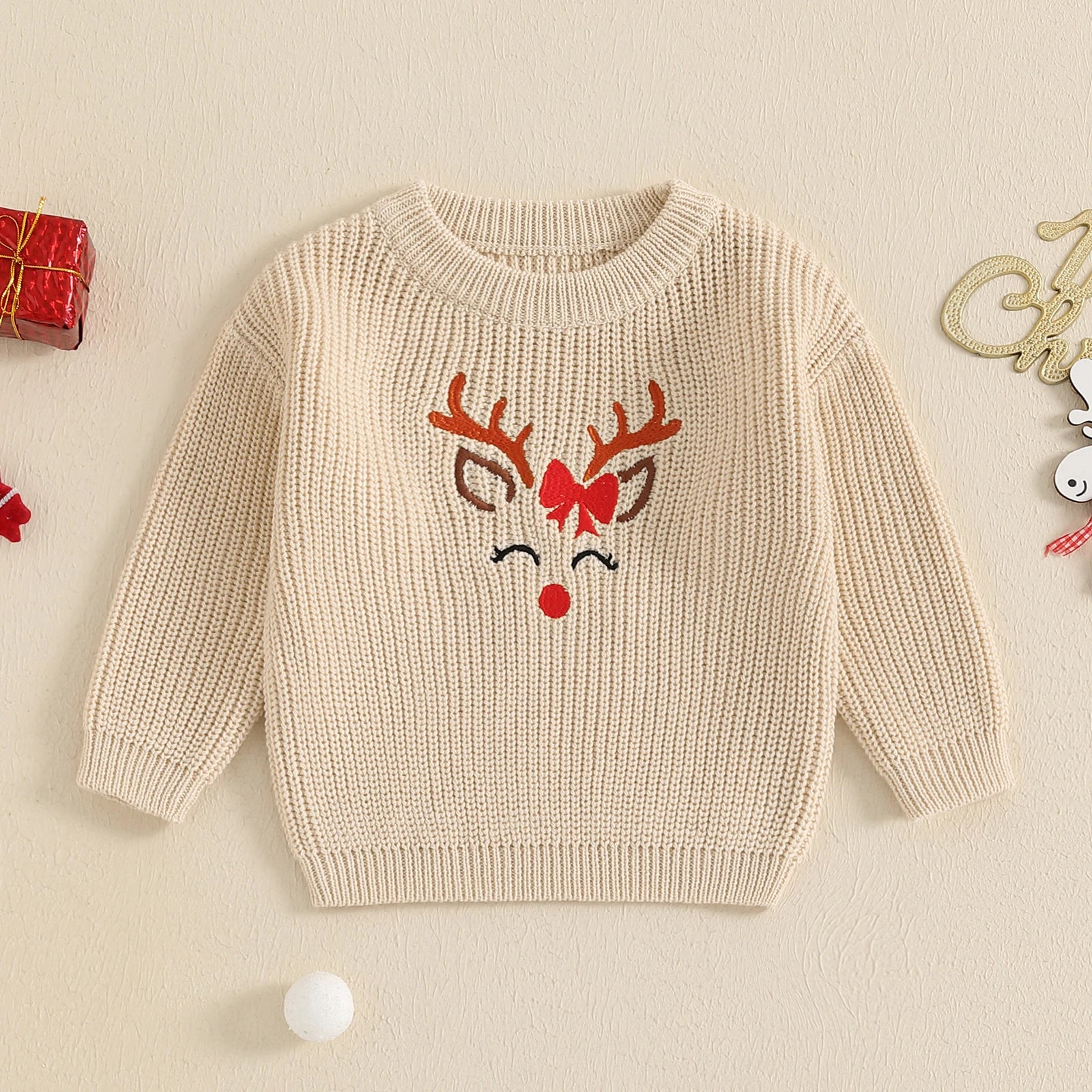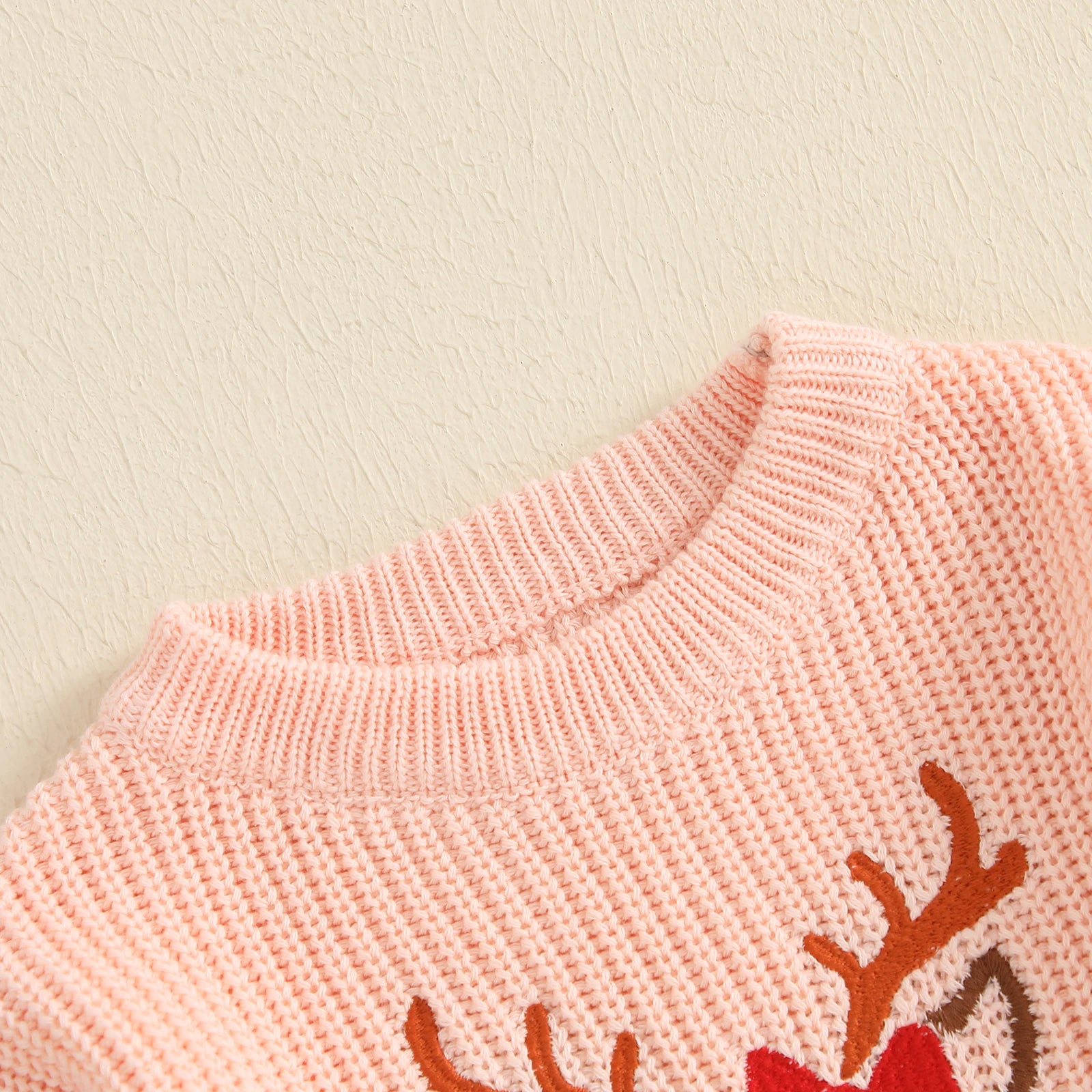 Get your little one ready for the holiday season with our Girl Reindeer sweater! Made for Christmas babies, this adorable sweater features a playful reindeer design. Keep your little girl warm and stylish this season.