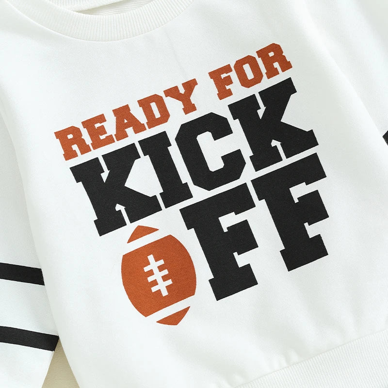 Get your little one ready for game day with this adorable Kick Off Cutie football sweatshirt! Perfect for cheering on your team or just playing outside, this sweatshirt will keep your baby warm and stylish. Score a touchdown with this cute and cozy addition to their wardrobe.